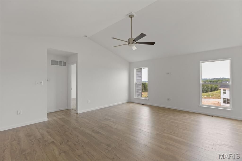 New McBride Homes Aspen 3BR & 2BA, ranch-style home will be available this summer! Enjoy an open floor plan w/vaulted ceiling, great room w/ceiling fan, 6ft windows & wood laminate flooring in the main living area. The kitchen features level 4 Brellin Painted White 42 cabinets, stainless steel GE appliances, & a peninsula with a flush breakfast bar for additional seating. The primary suite has a walk-in closet, & private bath with a double sink vanity & a 5ft walk-in shower. Two extra bedrooms & a full bath add convenience. Other extras include ceiling fan prewires, main floor laundry, garage coach lights, white 6 panel interior doors & more! The LL features 3/4 bath rough in for a future finish. Pagedale offers urban convenience and suburban comfort, with easy access to the Delmar Loop, Forest Park, and shopping, plus quick commutes via highways 40, 170, and I-70. Enjoy peace of mind with McBride Homes' 10-year builders warranty and incredible customer service! Similar photos shown.