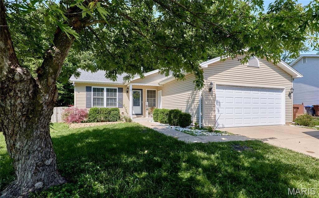 Check out this beautiful 2+ bed, 2.5 bath RANCH in the heart of St. Peters, just minutes from major highways, shopping, restaurants, and parks! Sitting on a cul-de-sac lot, featuring open kitchen features stainless steel appliances, backsplash, and granite counter tops. Large master bedroom has a walk in closet and full bath (2 sinks!). 2nd bedroom also has a walk in closet. Finished basement offers plenty of storage, a large wet bar area, half bath, a multi-purpose bonus room, and another space that could serve as great office space or sleeping area! The fully fenced backyard is great for pets, privacy, and entertaining on the aggregate back patio!